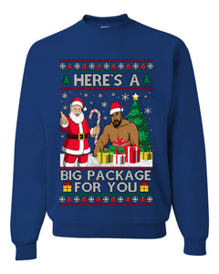 Here's A Big Package For You Santa Christmas Sweater, Unisex Ugly Christmas Crewneck Sweatshirts