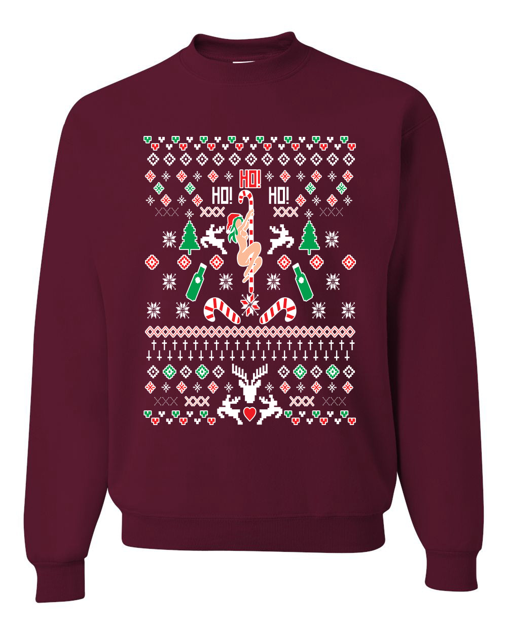 Ho Ho Ho Funny Offensive Stripper Alcohol Xmas Merry Ugly Christmas Sweater Unisex Crewneck Graphic Sweatshirt