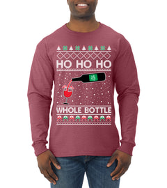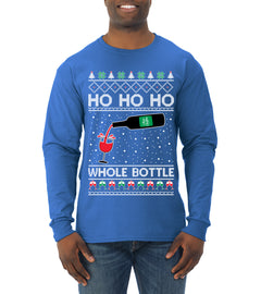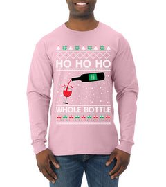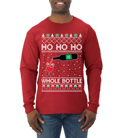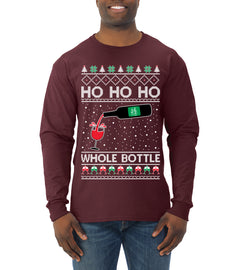 Ho Ho Ho Whole Bottle Wine Spirits Ugly Christmas Sweater Mens Long Sleeve Shirt