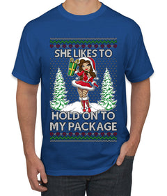 Hold My Package, Ugly Christmas Sweater Unisex Unisex Men's T-Shirt