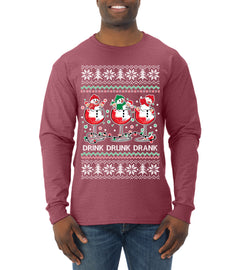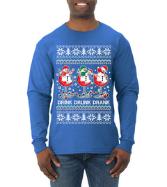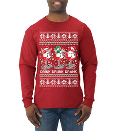 Holiday Spirits Drink Drank Drunk Snowmen Ugly Christmas Sweater Mens Long Sleeve Shirt
