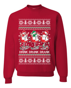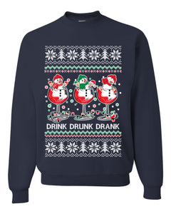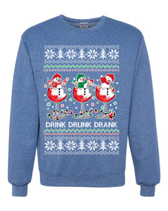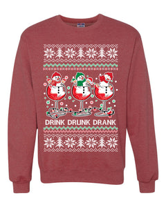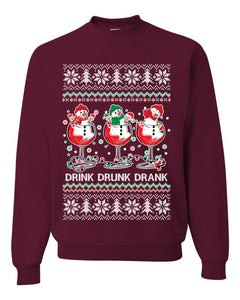 Holiday Spirits Drink Drank Drunk Snowmen Ugly Christmas Sweater Unisex Crewneck Sweatshirt