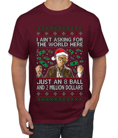 I Ain't Asking For the World Here, Just An 8 Ball and 2 Million Dollars, Ugly Christmas Sweater Unisex Men's T-Shirt