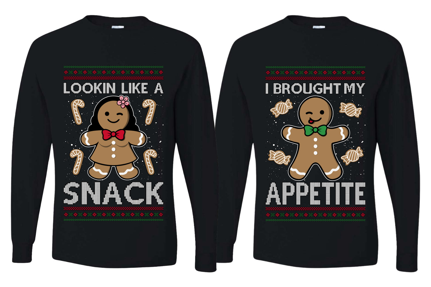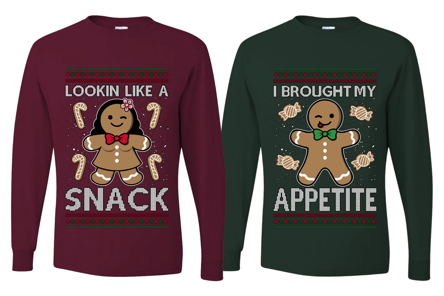 I Brought My Appetitie Lookin Like A Snack Sweater Girlfriend Boyfriend Gift His and Hers Matching Ugly Christmas Couple Long Sleeve Shirt