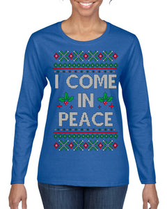 I Come in Peace Ugly Christmas Sweater Womens Graphic Long Sleeve T-Shirt