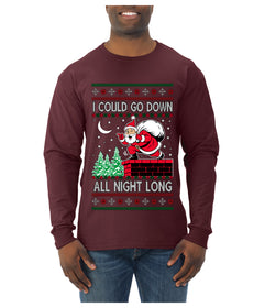 I Could Go Down All Night Long, Ugly Christmas Sweater Mens Long Sleeve Shirt