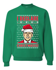 I Declare Christmasss Michael Scott Office Tv Merry Ugly Christmas Sweater Unisex Crewneck Graphic Sweatshirt