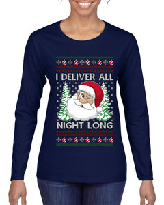 I Deliver All Night Long, Ugly Christmas Sweater Womens Graphic Long Sleeve T-Shirt