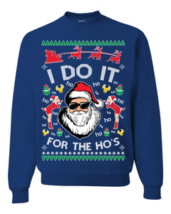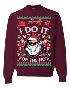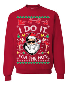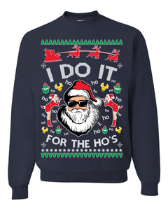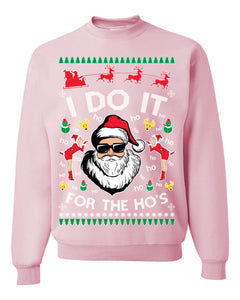 I Do It for the Hos Funny Santa Claus Ugly Christmas Sweater Crewneck Sweatshirt