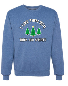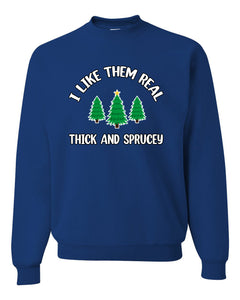 I Like Them Real Thick and Sprucy | Funny Ugly Christmas Sweater Crewneck