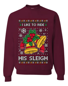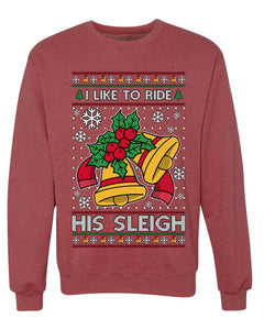 I Like To Ride His Sleigh, Unisex Ugly Christmas Sweater, Crewneck Sweatshirts