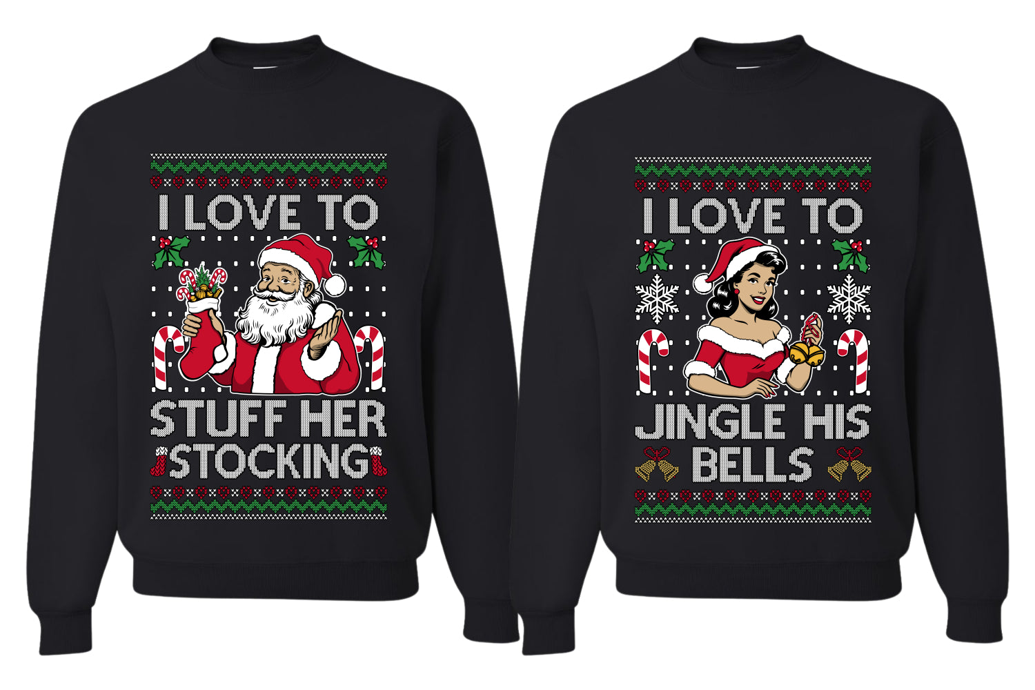 I Love To Stuff Her Stocking Jingle His Bells Sweater Girlfriend Boyfriend Gift His and Hers Matching Ugly Christmas Couple Crewneck Sweatshirt