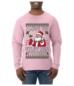 I Love To Stuff Her Stocking, Ugly Christmas Sweater Unisex Mens Long Sleeve Shirt