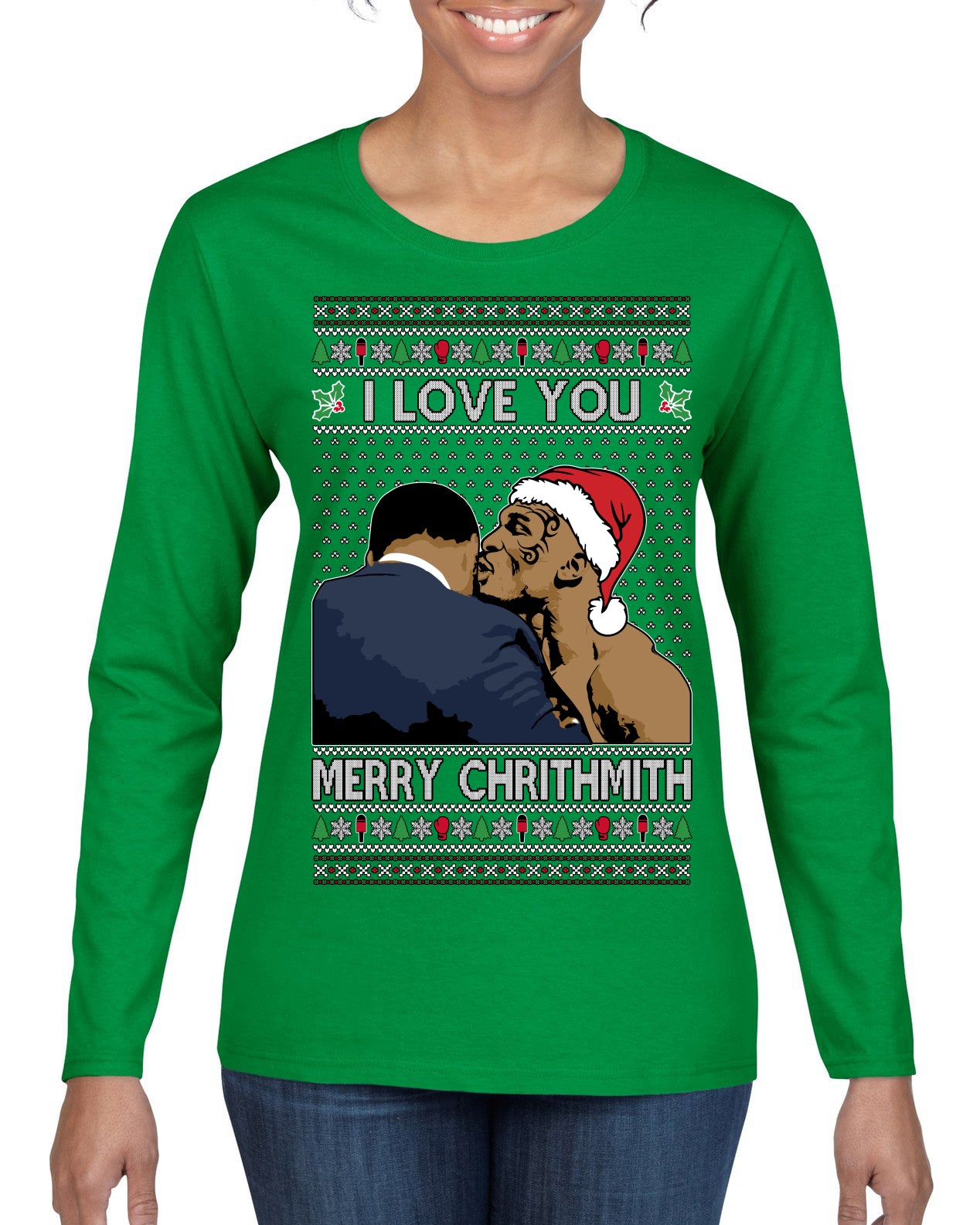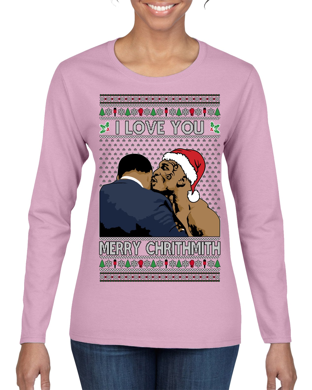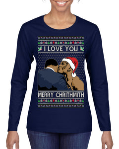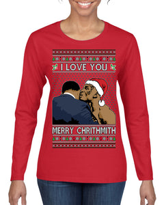 I Love You Merry Chrithmith Funny Boxing Fight Meme Classic Funny Xmas Ugly Christmas Sweater Womens Graphic Long Sleeve T-Shirt