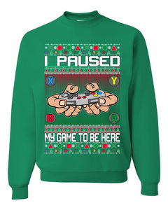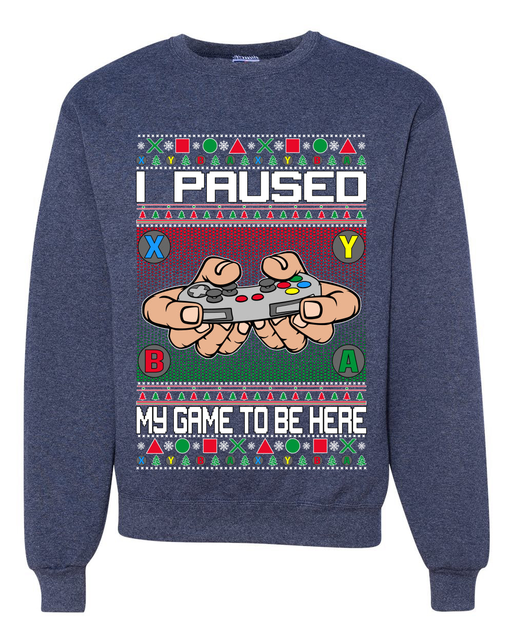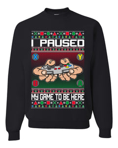 I Paused My Game To Be Here Merry Ugly Christmas Sweater Unisex Crewneck Graphic Sweatshirt