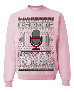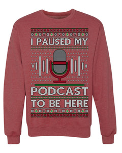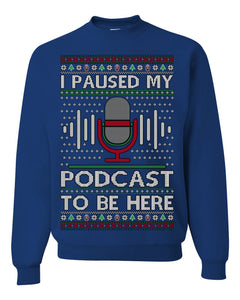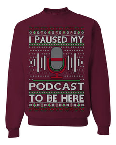 I Paused My Podcast to Be Here Funny Podcasting Ugly Christmas Sweater