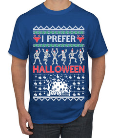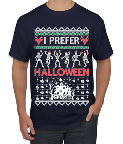 I Prefer Halloween Dancing Skeletons Ugly Christmas Sweater Men's T-Shirt