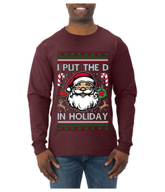 I Put The D In Holiday, Ugly Christmas Sweater Unisex Mens Long Sleeve Shirt