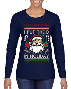 I Put The D In Holiday, Ugly Christmas Sweater Womens Graphic Long Sleeve T-Shirt
