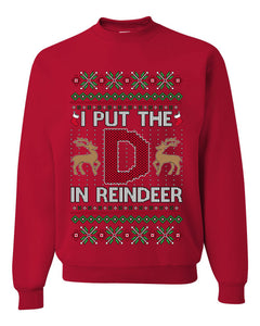 I Put The D In Reindeer, Unisex Ugly Christmas Sweater, Crewneck Sweatshirts