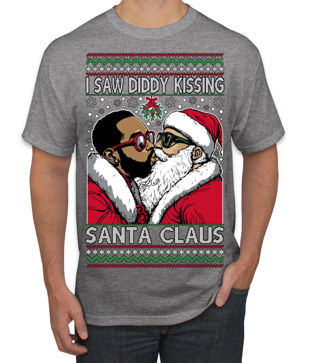 I Saw Diddy Kissing Santa Claus Funny Viral Music Meme Ugly Christmas Sweater Men's T-Shirt