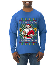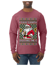 I Saw Santa Splitting The G, Ugly Christmas Sweater Unisex Mens Long Sleeve Shirt