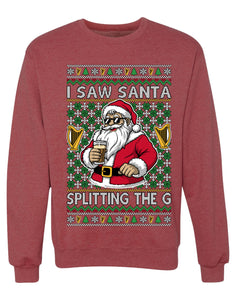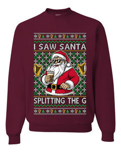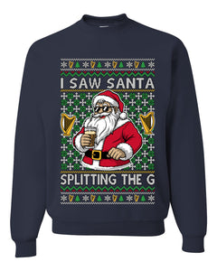 I Saw Santa Splitting The G, Unisex Ugly Christmas Sweater Crewneck Sweatshirts