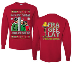 I Triple Dog Dare Ya Merry Story Ugly Christmas Front and Back Sweater Mens Long Sleeve Shirt