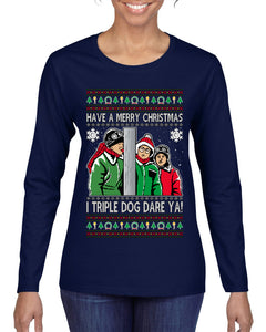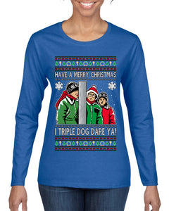I Triple Dog Dare Ya Merry Story Ugly Christmas Sweater Womens Graphic Long Sleeve T-Shirt