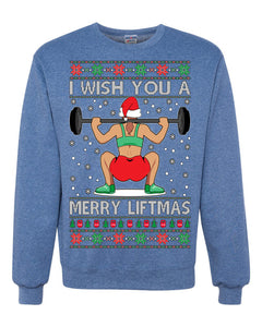 I Wish You A Merry Liftmas Woman Workout Gym Holiday Fitness Ugly Christmas Sweater Unisex Crewneck Graphic Sweatshirt