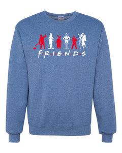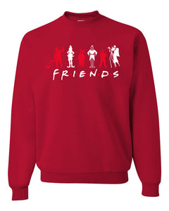 Iconic Holiday Movie Charcters Friends Parody Red White Ugly Christmas Sweater Unisex Crewneck Sweatshirt
