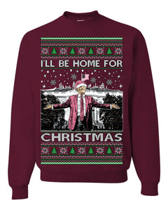 I'll Be Home For Christmas Pink Suit | Funny Santa Clause President Donald Trump Xmas Sweaters Crewneck Sweatshirts