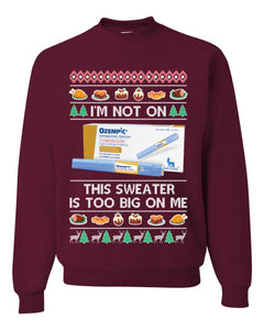 I'm Not On Ozempic This Sweat Is Too Big Ugly Christmas Sweater Unisex Crewneck Sweatshirt