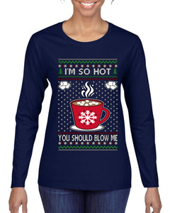 I'm So Hot You Should Blow Me Hot Cocoa, Ugly Christmas Sweater Womens Graphic Long Sleeve T-Shirt