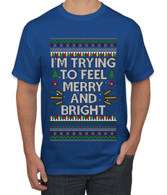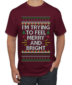 I'm Trying To Feel Merry And Bright, Ugly Christmas Sweater Unisex Men's T-Shirt