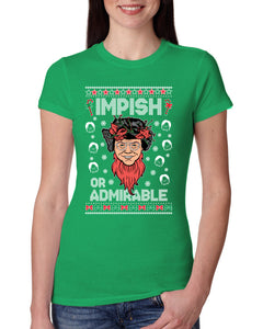 Impish or Admirable Dwight Schrute Ugly Christmas Sweater Womens Slim Fit Junior Tee
