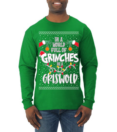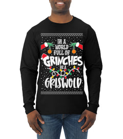 In A World Full Of Grinches Be A Grizwold Ugly Christmas Sweater Mens Long Sleeve Shirt