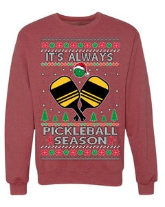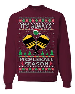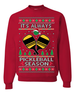It's Always Pickleball Season Funny Pickle Ball Sports Fan Ugly Christmas Sweater Crewneck Sweatshirt