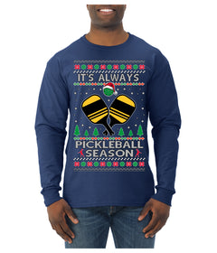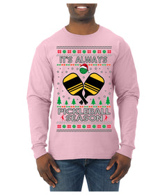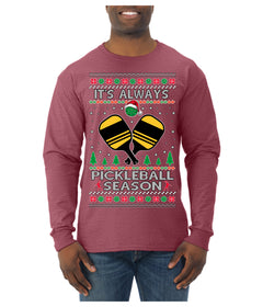 It's Always Pickleball Season Funny Pickle Ball Sports Fan Ugly Christmas Sweater Mens Long Sleeve Shirt