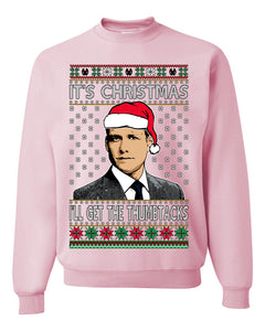 It's Christmas I'll Get The Thumbtacks TV Show Parody Ugly Christmas Sweater Unisex Crewneck Sweatshirt