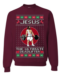 Jesus the Ultimate Deadlifter | Funny Ugly Christmas Sweater Crewneck Sweatshirt