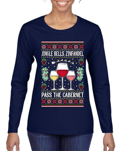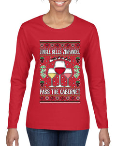 Jingle Bells, Zinfandel Pass The Cabernet Wine Drinker, Ugly Christmas Sweater Womens Graphic Long Sleeve T-Shirt