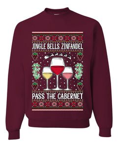 Jingle Bells, Zinfandel Pass The Cabernet Wine Drinker, Unisex Ugly Christmas Sweater, Crewneck Sweatshirts