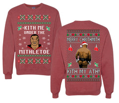 Kith Me Under The Mithletoe Funny Lisp Front and Back Unisex Ugly Christmas Sweater Crewneck Sweatshirt