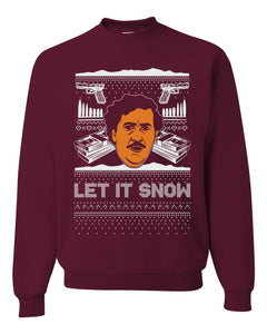 Let It Snow Funny Pablo Escobar Xmas Merry Ugly Christmas Sweater Unisex Crewneck Graphic Sweatshirt