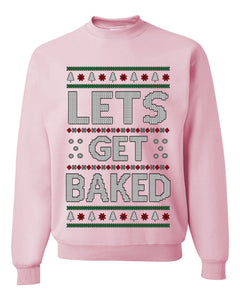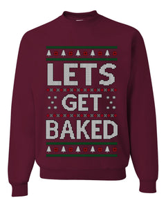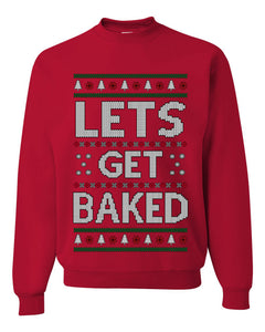 Let's Get Baked, Funny Stoner Christmas Unisex Sweater, Ugly Christmas Crewneck Sweatshirts