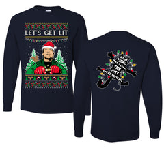Let's Get Lit Clark Vacation Movie Parody Ugly Christmas Front and Back Sweater Mens Long Sleeve Shirt