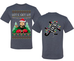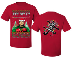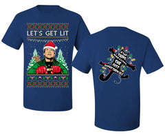 Let's Get Lit Clark Vacation Movie Parody Ugly Christmas Front and Back Sweater Men's T-Shirt