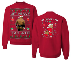 Lift Heavy Eat Ath Merry Chrithmith, Butt Viral Weightlifting Lifting Boxing Fight Meme, Funny Front and Back Unisex Ugly Christmas Sweater Crewneck Sweatshirt