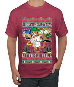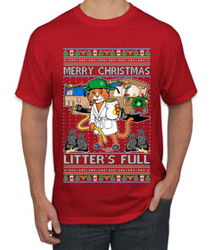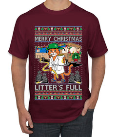 Litters Full Cat, Ugly Christmas Sweater Unisex Men's T-Shirt